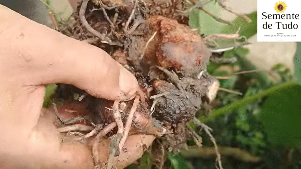 Esses pequenos tubérculos serão empregados na propagação da planta, contribuindo para a expansão gradual do plantio.