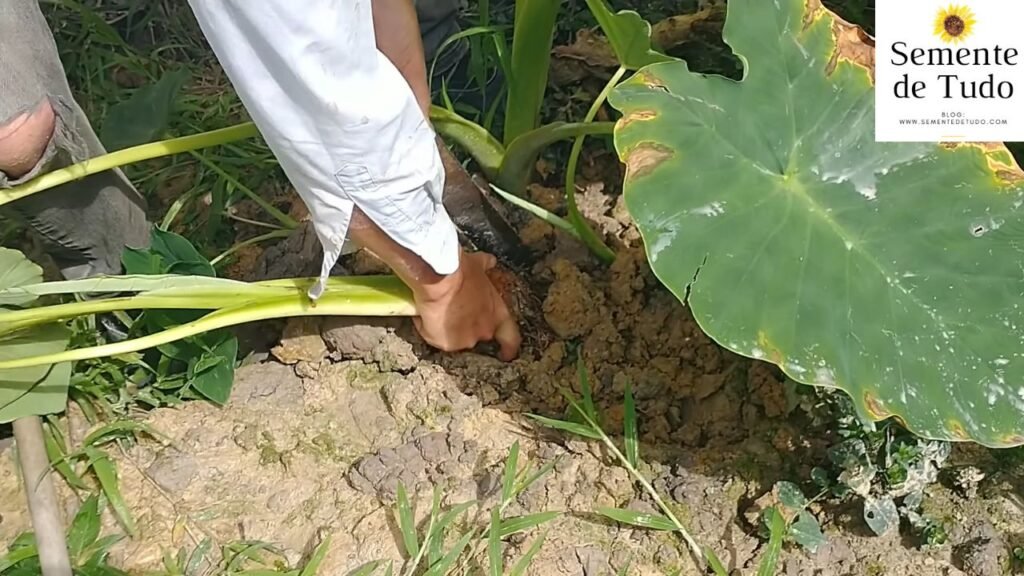 Lá no vídeo a gente mostra direitinho como plantamos o “dentinho” do inhame rosa e como fazemos a colheita na prática: