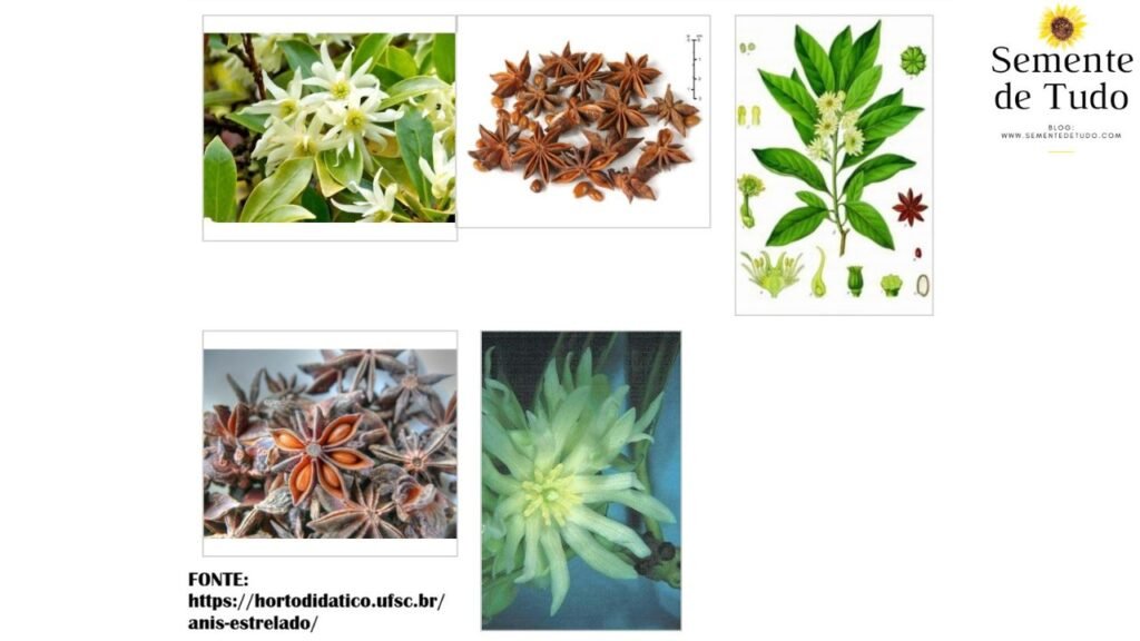 - Anis-estrelado (Illicium verum): espécie que produz frutos em forma de estrela, muito bonitos e aromáticos.