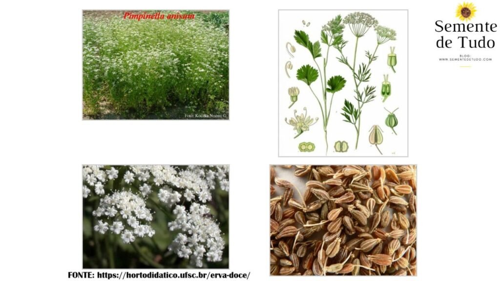 - Erva doce / Anis (Pimpinella anisum): planta anual, também produz sementes parecidas, mas não é perene.
